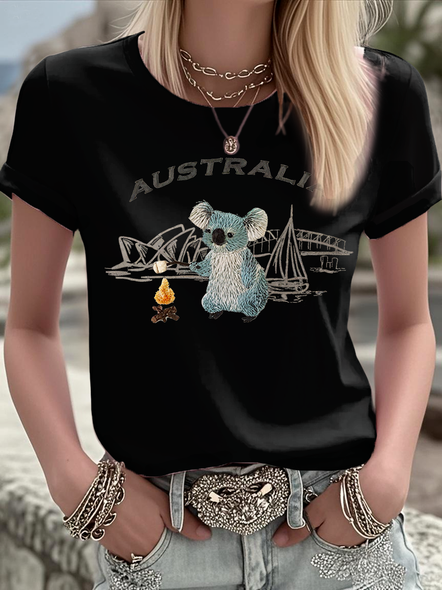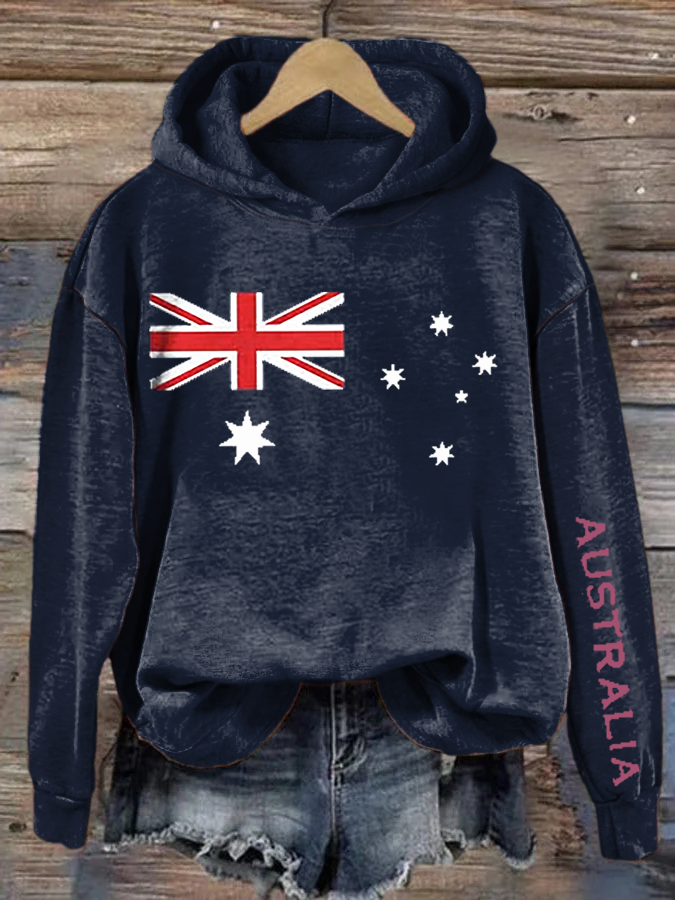 Vintage Australian Flag Badge Slogan Printed Casual Cotton Short Sleeve Polo Shirt