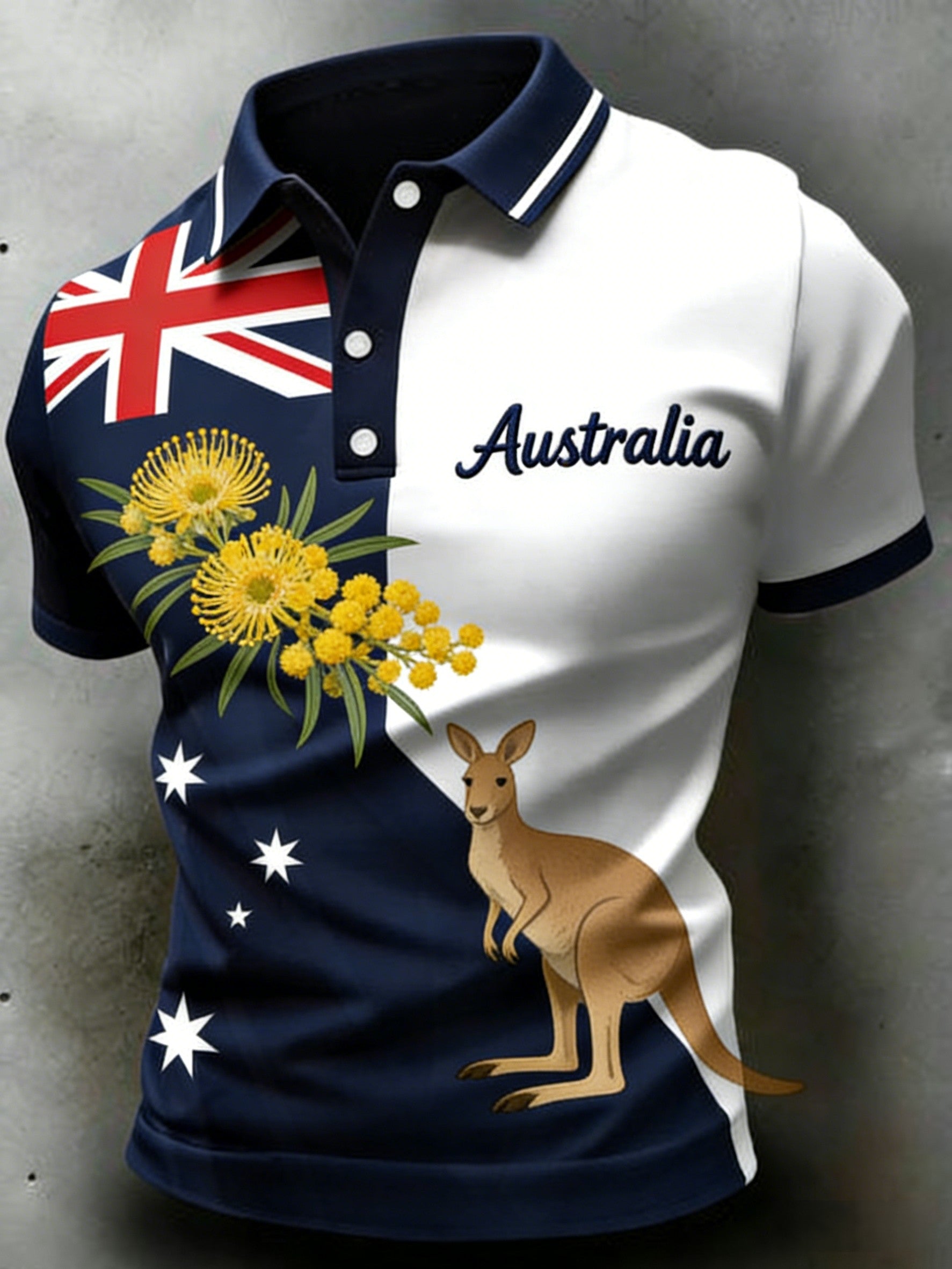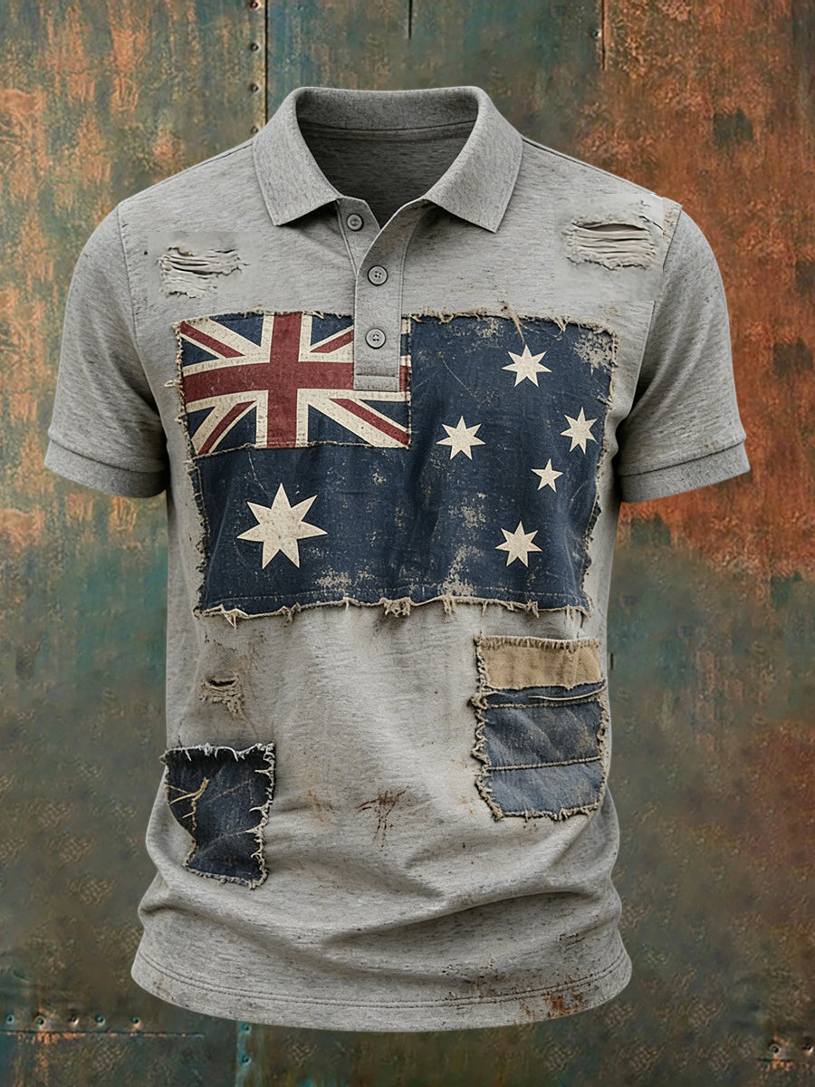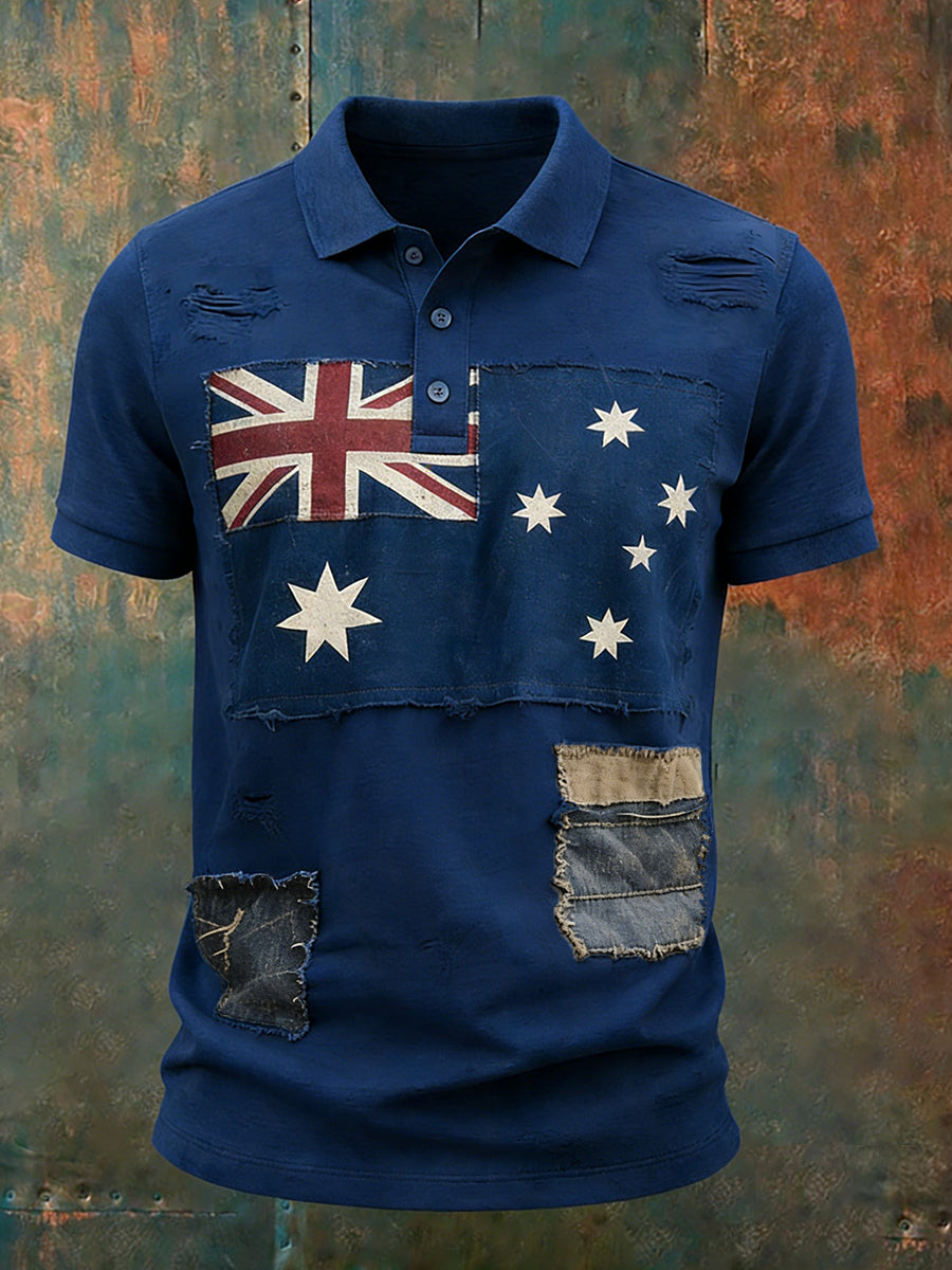 Men's Vintage Australian Flag Badge Printed Casual Cotton Short Sleeve Polo Shirt
